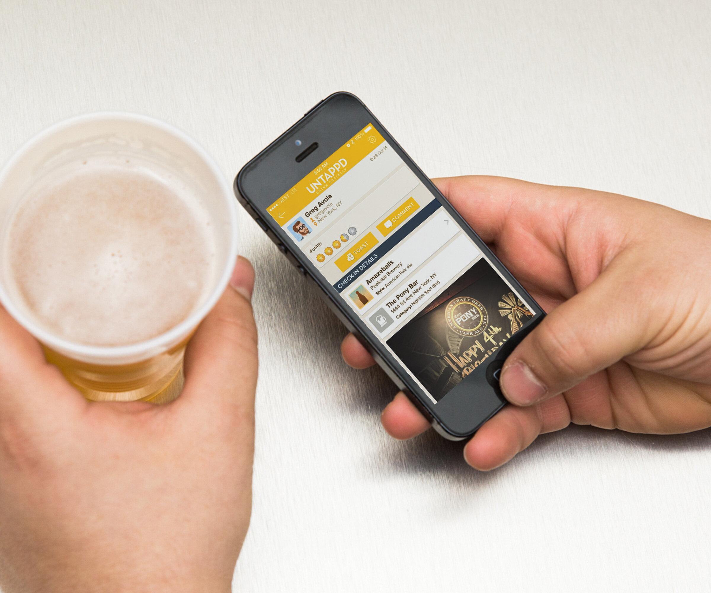 The RateBeer app allows you to follow your friends on. Simply choose any drink or any other activity in the app to notify your friends. Open the map and find.